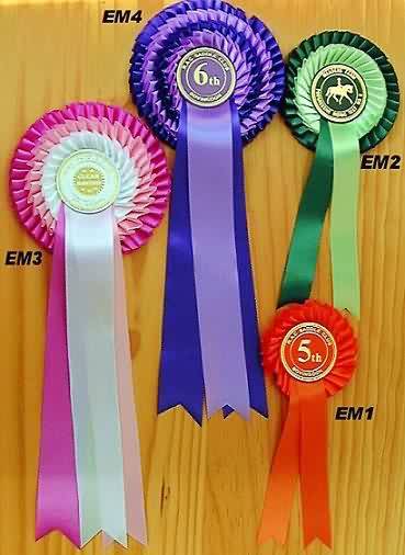 All 1 and 2 tier rosettes have 2 x 15cm (2 x 6") tails, all 3 or 4 tier rosettes have 3 x 23cm (3 x 9") tails.