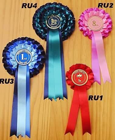 All 1 and 2 tier rosettes have 2 x 15cm (2x6") tails, all 3 or 4 tier rosettes have 3 x 23cm (3x9") tails.