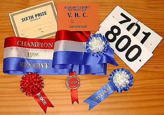 In addition to hand-making show rosettes for all kinds of events across Dorset, we also supply a range of horse show sundries and other show sundries including sashes, show badges, show numbers and prize cards for horse shows, dog shows, cattle shows etc.